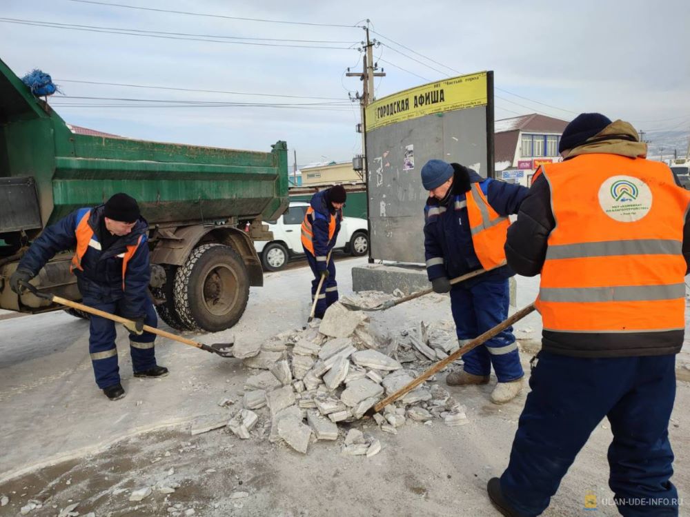Уборщики территорий продолжают очищать пешеходные зоны в Улан-Удэ