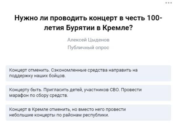 Он предложил жителям республики вместе принять решение и опубликовал опрос на личной странице во «ВКонтакте». На выбор предложили три варианта.
