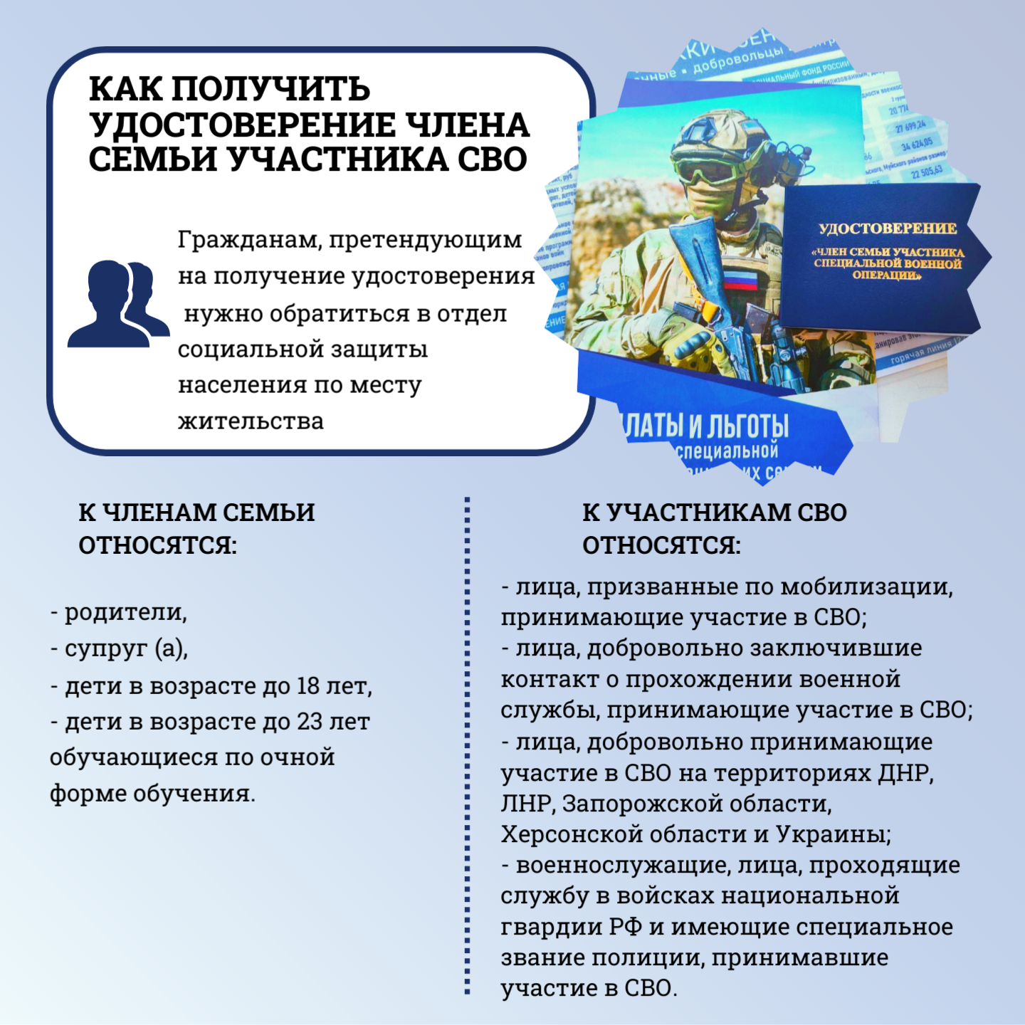 Граждане, претендующие на получение удостоверения "Член семьи участника специальной военной операции" подают заявление лично в отделы социальной защиты населения по месту жительства.
