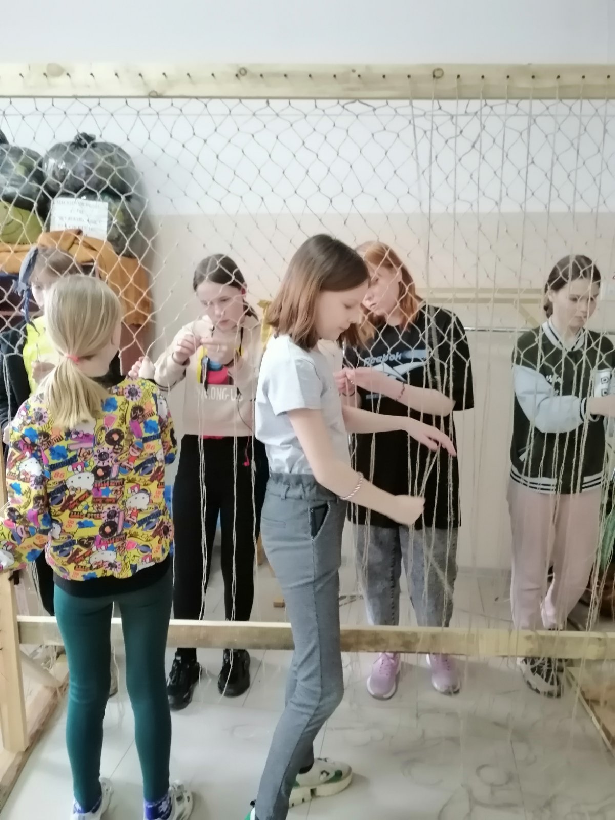 - Здесь нам объяснили всю технологию изготовления сетей. Сначала плетётся сеть - основа, одновременно нарезаются полоски ткани разного цвета, определённой длины и ширины, которые затем привязывают на сеть-основу, - поделились ребята Хоринского центра помощи детям, оставшимся без попечения родителей.