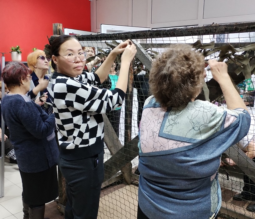 Совместными усилиями с пожилыми гражданами «серебряного» возраста, которые посещают «Центр общения старшего поколения» в городе Гусиноозерске и членами ТОСа «Радость», специалисты активно подключились к процессу изготовления маскировочных сетей для бойцов, задействованных в СВО.