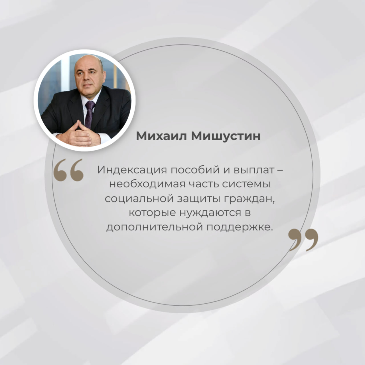 Как отметил Председатель Правительства Михаил Мишустин, индексация пособий и выплат – необходимая часть системы социальной защиты граждан, которые нуждаются в дополнительной поддержке. В Правительстве ведется работа по обеспечению своевременных выплат в полном объеме.