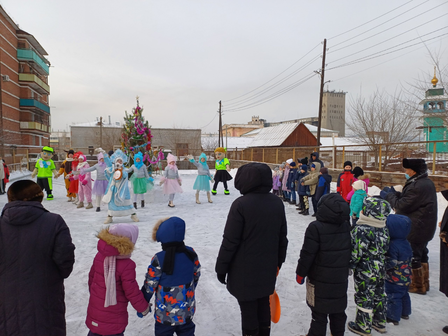 На этот раз праздник пришел в поселок Таежный и на улицу Тулаева Текст: Евгения Гармаева В столице Бурятии весь декабрь проходят народные гуляния в честь наступающего Нового года.