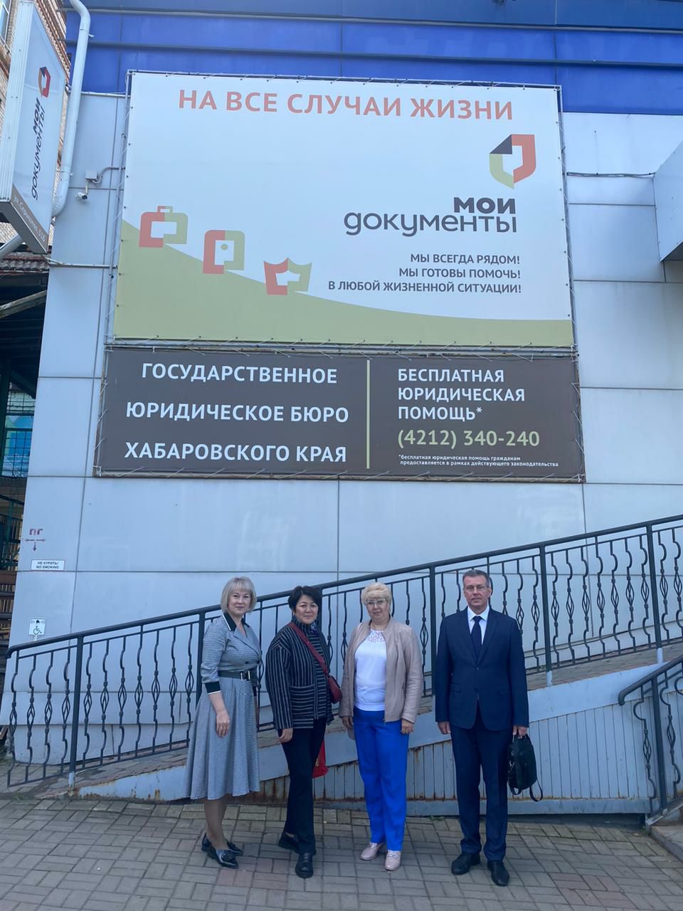 В целях изучения опыта по возложению функций государственного юридического бюро на ГБУ «Многофункциональный центр по предоставлению государственных и муниципальных услуг» начальник Управления М.В. Барнакова посетила Государственное юридическое бюро Хабаровского края.