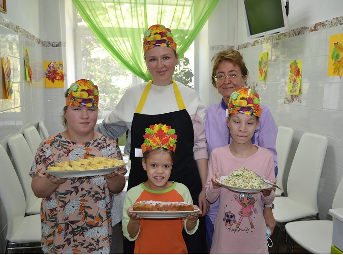 А девочки вместе с воспитателем и нашей гостьей кондитером Екатериной готовили вкусные и полезные осенние блюда – осенний салат, кабачковый рулет и очень вкусный тыквенный пирог.