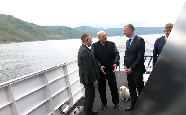 Вместе с губернатором Иркутской области Игорем Кобзевым и полномочным представителем президента РФ в Сибирском федеральном округе Анатолием Серышевым президент Белоруссии совершил прогулку на корабле вдоль Кругобайкальской железной дороги.