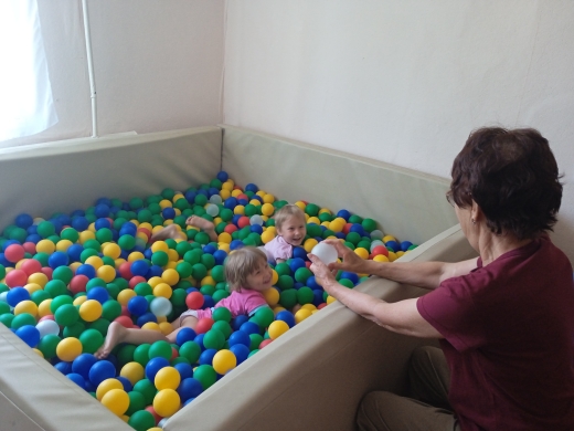 Одним из оборудований «мягкой среды» сенсорной комнаты является «сухой бассейн», выполняющий функции релаксации и игры по работе с детьми. В практике работы психолога нашего учреждения активно используются возможности «сухого бассейна». Возрастных ограничений и противопоказаний для занятий в бассейне с шариками нет. По словам психолога центра, сухой бассейн несет в себе не только релаксационную и развлекательную функцию, он еще и благоприятно влияет на здоровье. Практика использования сухого бассейн подтверждает многостороннее влияние на организм ребенка: общеразвивающее, коррекционное, психотерапевтическое.