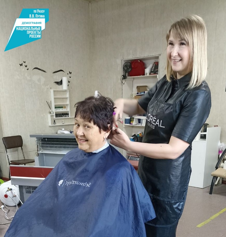 В Заиграевском районе индивидуальный предприниматель Альбина Алексеева на протяжении трёх лет реализует свой социальный проект. К определенным датам она совершенно бесплатно оказывает парикмахерские услуги одиноким пенсионерам и людям с инвалидностью. В 2021 году жительница с. Заиграево заключила социальный контракт в рамках президентского национального проекта «Демография» и открыла свой салон красоты.