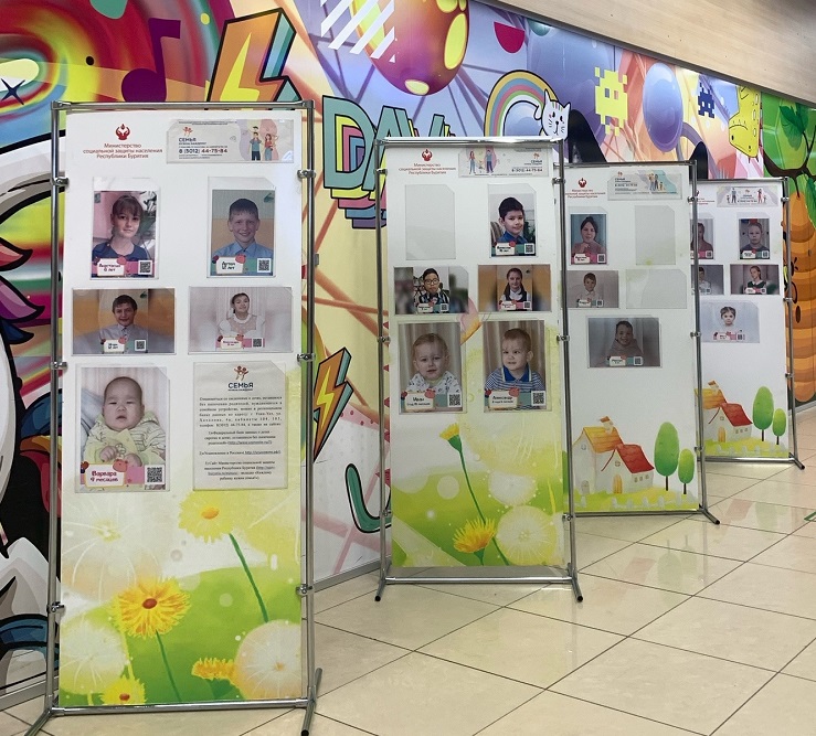 - Здесь были представлены фотографии 43 детей-сирот от 1 года до 18 лет, которые воспитываются в детских государственных учреждениях Минсоцзащиты Республики Бурятия и мечтают обрести любящих маму и папу. На каждой фотографии есть QR-код для быстрого перехода на анкету ребенка на сайте https://www.usynovite.ru/ . За 2 месяца проведения фотовыставки в ТРЦ «People´s park» 5 детей обрели любящую и заботливую семью! - отметили в Минсоцзащиты республики.