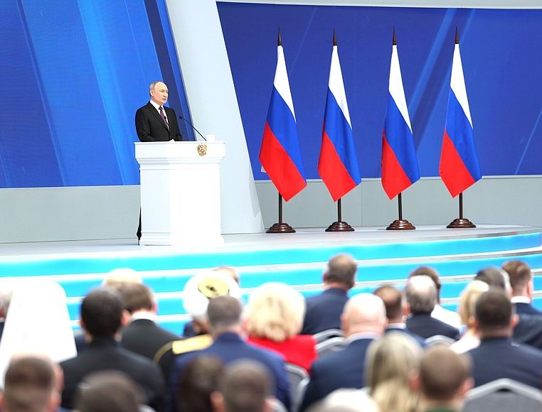 Президент подтвердил твердый настрой на успешное завершение СВО Текст: Служба информации "Номер один" Президент России Путин, который в эти минуты оглашает традиционное послание Федеральному собранию,