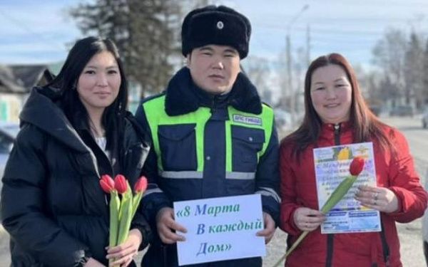 В селе Иволгинск дамам вручили тюльпаны и призвали быть внимательными на дорогах, сообщает пресс-служба МВД по Бурятии.