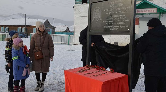 20 января в селе Улюн состоялась церемония открытия мемориальной доски в память об Алексее Андреевиче Аюшееве, погибшем в ходе специальной военной операции, а также вручение награды семье героя.