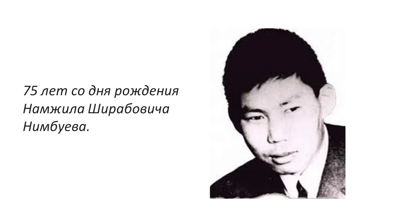Региональный центр доступа к информационным ресурсам Президентской библиотеки Республики Бурятия представляет вашему вниманию онлайн-викторину, посвященную 75-летию со дня рождения известного бурятского поэта Намжила Ширабовича Нимбуева.