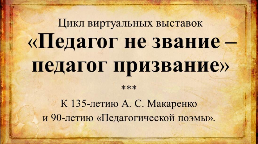 Цикл виртуальных выставок «Педагог не звание – педагог призвание». К 135-летию А. С. Макаренко и 90-летию «Педагогической поэмы.