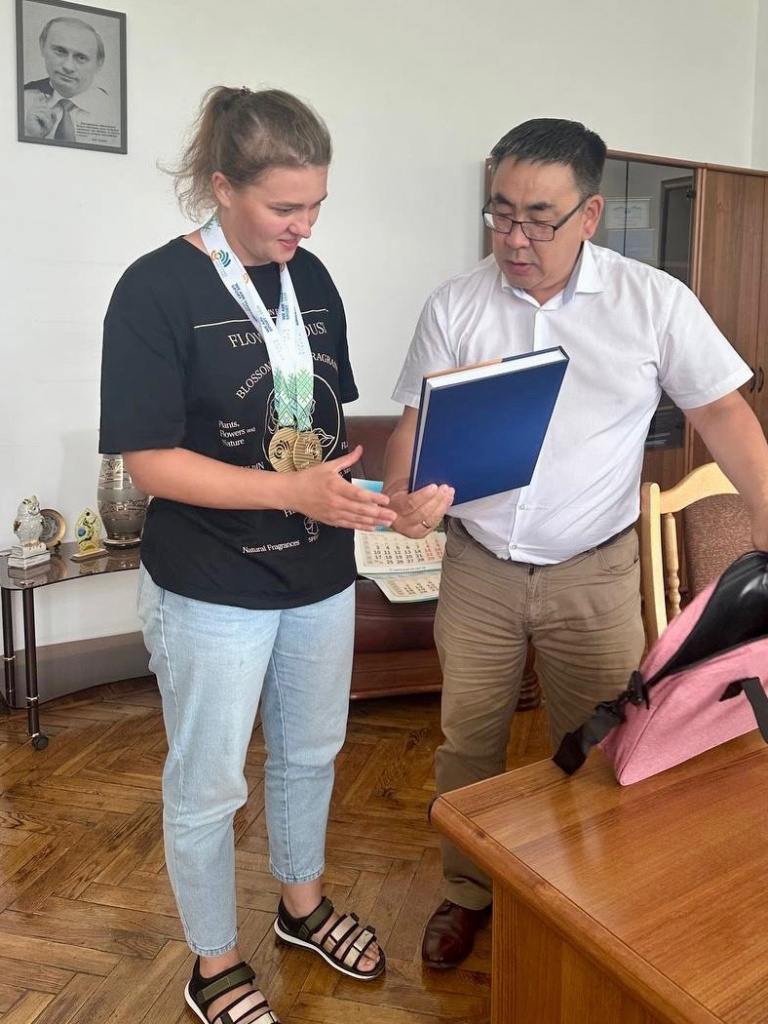 Сегодня состоялась встреча ректора вуза Бэликто Цыбикова с обладательницей золотой медали Летних игр сурдлимпийцев, студенткой агрономического факультета Анной Гнеушевой .