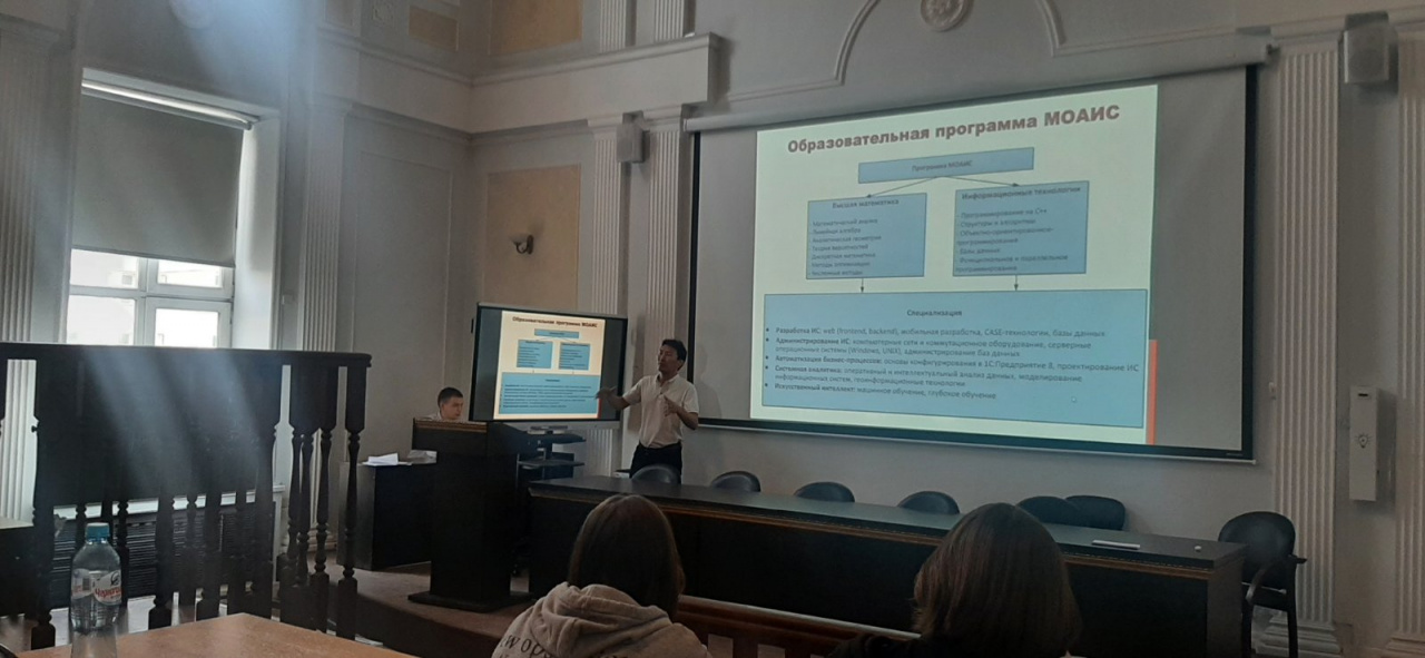 Вместе с заведующим лабораторией программных систем Баиром Викторовичем, старшеклассники окунулись в мир программирования и разработки ПО. Школьники задавали много вопросов, интересовались созданием программных продуктов в сфере мобильных и настольных приложений, а так же веб-приложений и веб-сайтов.