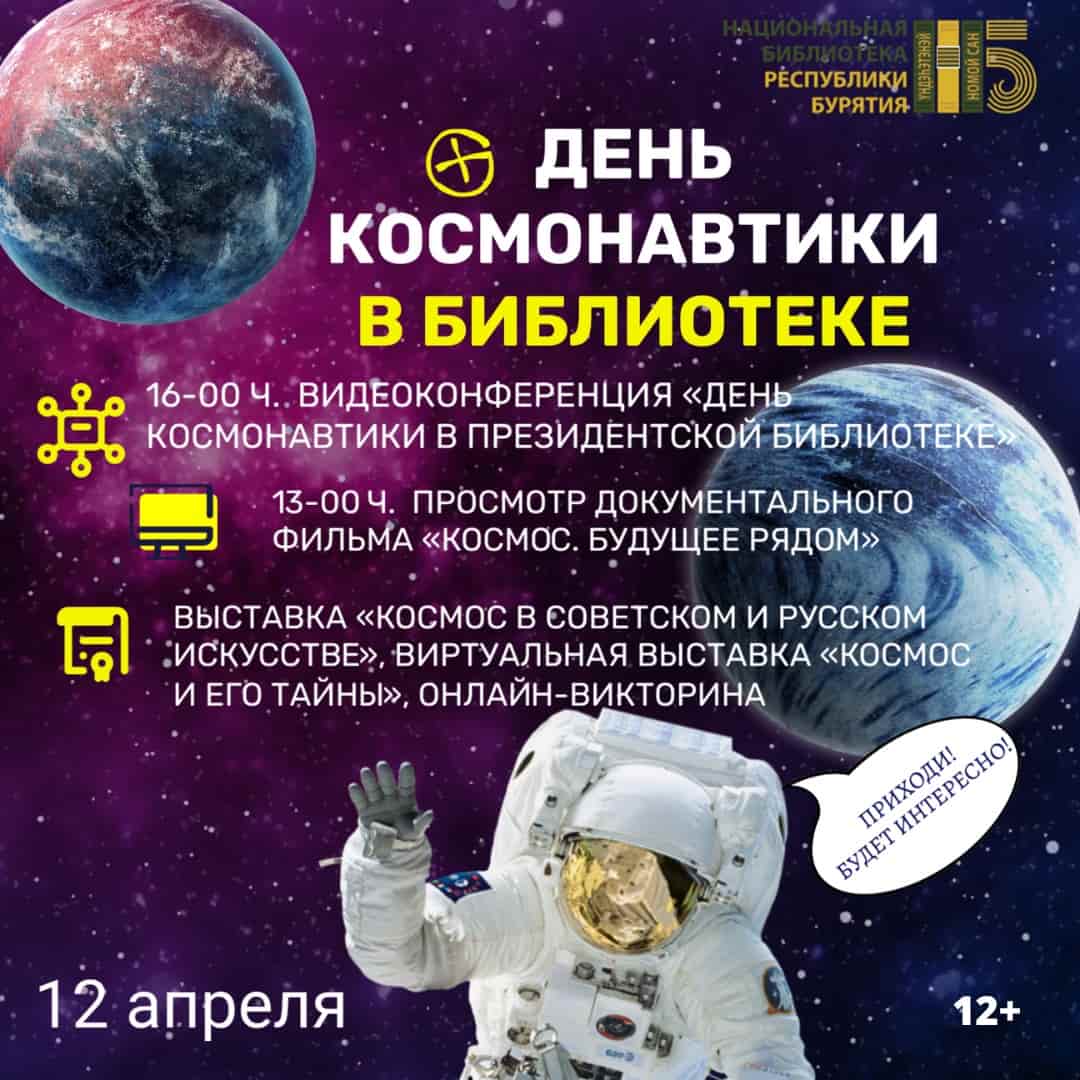 12 апреля в Национальной библиотеке Республики Бурятия пройдут мероприятия, посвященные Дню космонавтики