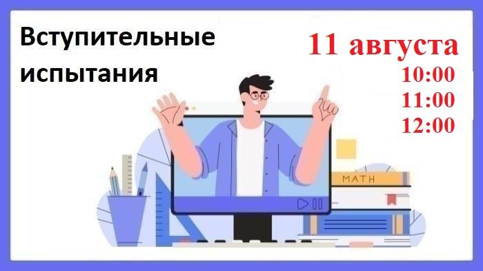 Начало вступительных испытаний 11 августа 2023 года - в 1 0:00, 11:00 и 12:00.