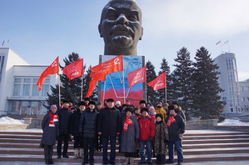 Коммунисты собрались на главной площади столицы Республики Бурятия у памятника выдающегося человека, гения человечества, основателя первого в мире социалистического государства – Владимира Ильича Ленина в 11.00. Площадь заалела флагами, гвоздиками, шарфами КПРФ.
