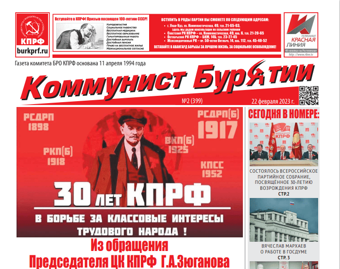 Читайте новый выпуск газеты «Коммунист Бурятии» . Выпуск от 24 февраля 2023 года.