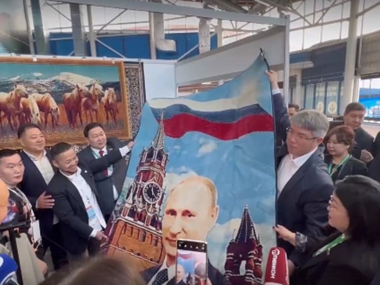 Глава Бурятии Алексей Цыденов приобрел шерстяной ковёр с изображением президента России Владимира Путина. Это изделие изготовили мастера из Монголии и представили на выставке-ярмарке «Волшебный Белый месяц» в физкультурно-спортивном комплексе Улан-Удэ (6+).