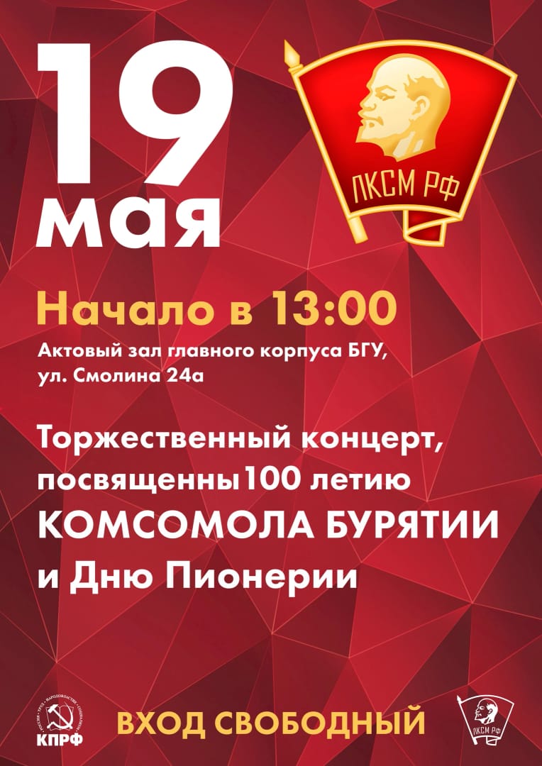 5 мая 1924 года в Верхнеудинске собрался I-й Всебурятский съезд РКСМ, на котором присутствовало 50 делегатов, представляющих 1069 членов и 201 кандидата в члены РКСМ. Съезд принял решение объединить комсомольские организации бывших Бурят-Монгольских областей в составе РСФСР, ДВР и Прибайкальской губернии в Бурят-Монгольскую областную организацию РКСМ. Этот день и принято считать днем рождения бурятского комсомола.