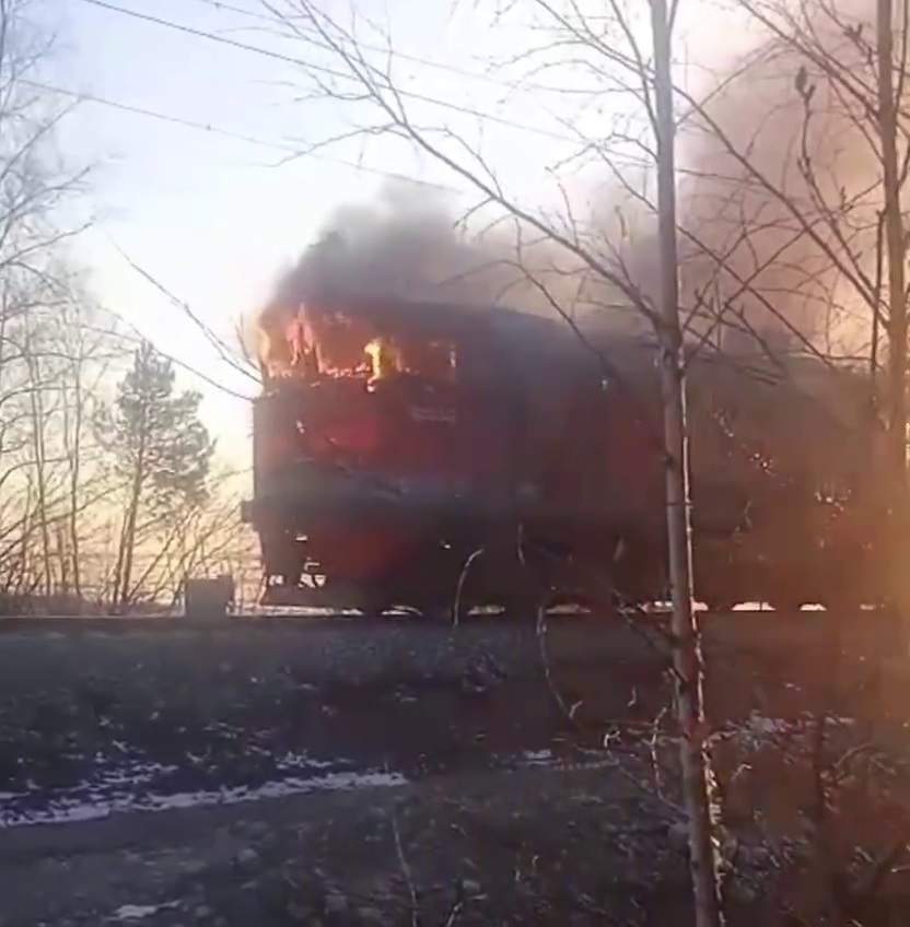 На севере Бурятии полыхнул тепловоз