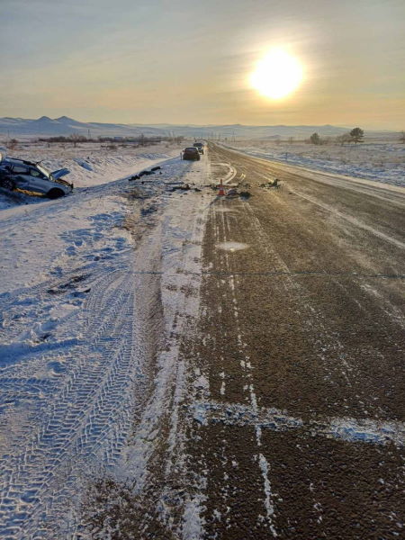 Фото:УГИБДД по Бурятии Лоб в лоб столкнулись автомобили «Чери» и «Хонда» В субботу, 6 января, около 13:30 в Кяхтинском районе Бурятии на 186 километре автодороги Улан-Удэ – Кяхта, вблизи села Субуктуй,