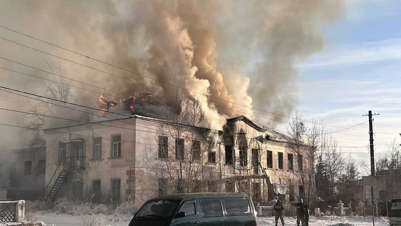 В Гусиноозерске наконец потушили горящее здание заброшенного Комбината бытового обслуживания.