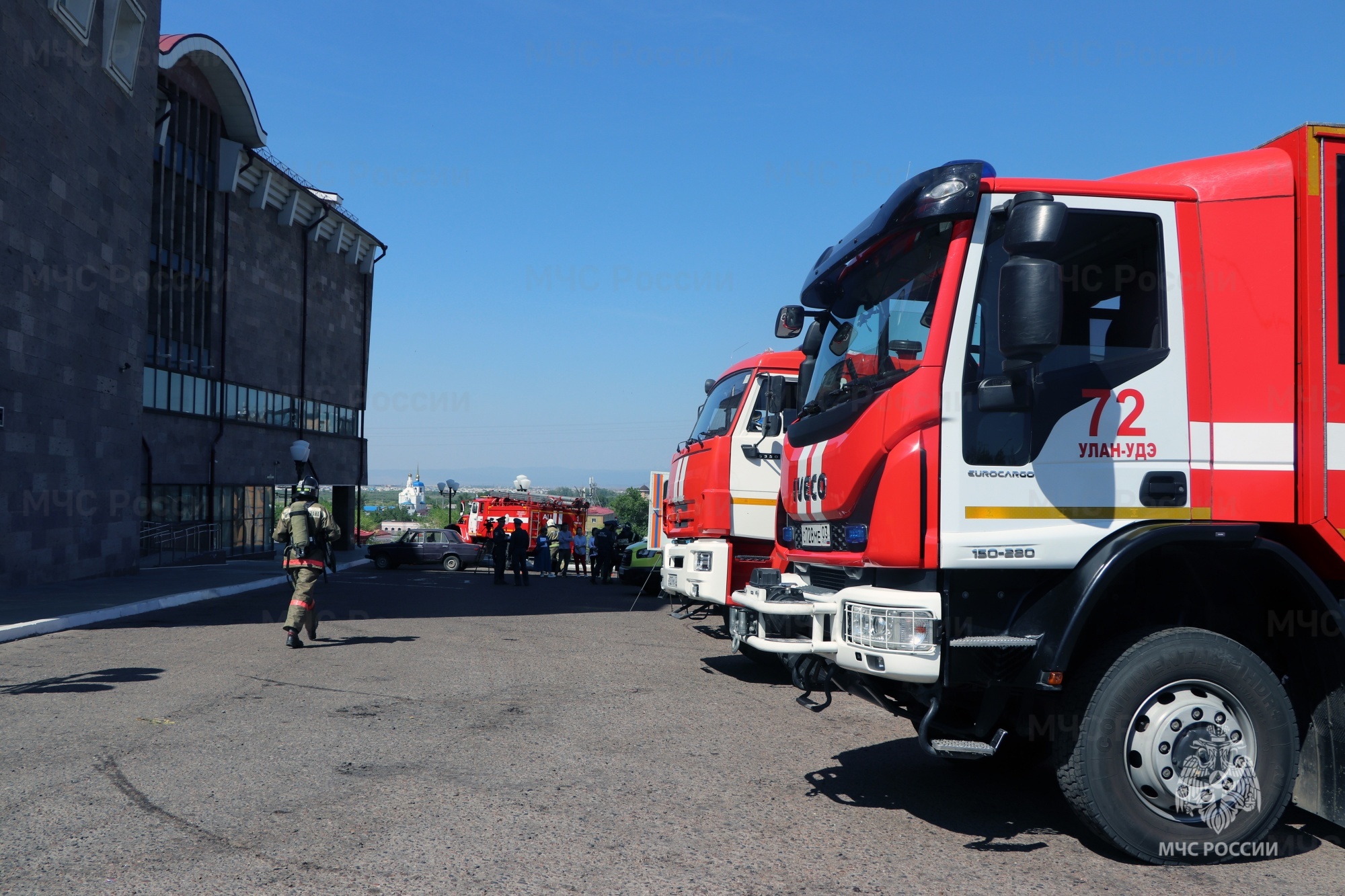 Сегодня в Улан-Удэ, в Бурятском академическом театре драмы имени Хоца Намсараева проведено пожарно-тактическое учение. Навыки по тушению условного возгорания, эвакуации пострадавших и проведению аварийно-спасательных работ отработали пожарные, спасатели и медики.