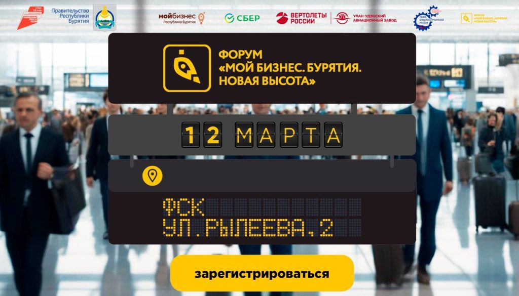 12 марта в рамках бизнес-форума «Мой бизнес. Бурятия. Новая высота» состоится ярмарка услуг. Мероприятие пройдет в рамках национального проекта «Малое и среднее предпринимательство и поддержка индивидуальной предпринимательской инициативы», инициированного президентом России Владимиром Путиным.