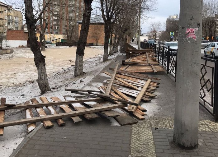 Штормовой ветер в Улан-Удэ снес забор и дорожный знак