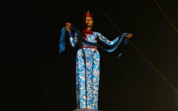 Фото: мэрия Улан-УдэВ Улан-Удэ вчера вечером, статуя "Гостеприимная Бурятия" на Селенгинском мосту меняла наряды. Праздничные платья и дэгэлы создали дизайнеры комитета городского хозяйства и МУП "Горсвет".