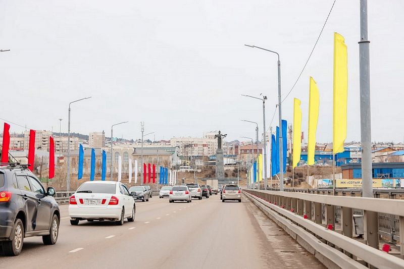 Улицы Улан-Удэ украшают к 79-й годовщине победы в Великой Отечественной войне флагами, праздничными панно на рекламных конструкциях и растяжками на основных путепроводах.