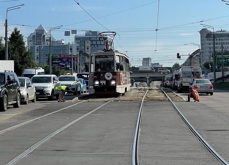 Как рассказали в мэрии, ремонт будет проходить в два этапа. Первый этап продлится с 31 июля по 14 августа и затронет пока только одну сторону. Будет произведена замена рельсошпальной решетки протяженностью 150 метров в направлении по улице Коммунистическая - к остановке «Площадь Советов.