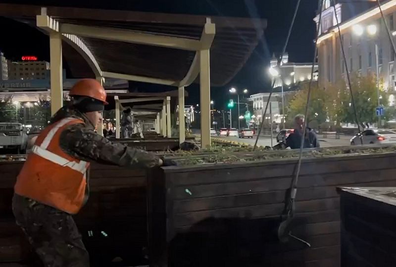 На центральной площади столицы Бурятии, Улан-Удэ, начался демонтаж летней зоны отдыха. Этот процесс был инициирован в связи с приближением холодов и необходимостью подготовить площадь к зимнему сезону.