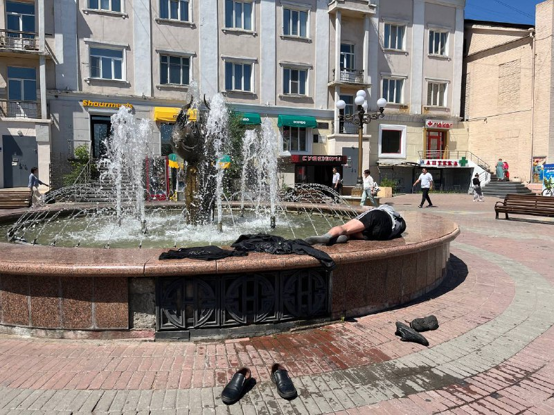Сегодня, 25 июня, двое мужчин искупались в фонтане на Арбате в Улан-Удэ, а затем улеглись спать прямо на бортиках.