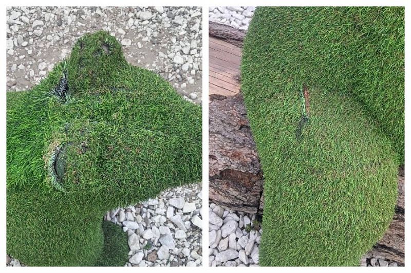 На этот раз пострадали мишки в сквере «Зодчий» в Октябрьском районе. В результате вандальных действий у животных разорваны ушки, лапы, расцарапаны спина и мордочка. Топиарные фигуры отправятся на ремонт. Найти тех, кто это сделал, пока не удалось.