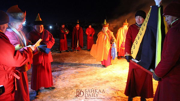 В 18:00 ламы начнут читать специальный молебен «Дугжууба», после чего разведут ритуальный костер. Специально для Дугжуубы ламы готовят так называемый «соор» – увенчанную черепом высокую пирамиду из реек, бумаги и теста, напоминающую наконечник стрелы. Под ритуальные молитвы в него «вкладывают» подношение Чойжал сахюусану, и затем торжественно сжигают на большом костре как символ духовного очищения.