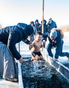 После этого все желающие набрали освящённой воды и приняли крещение в январской проруби! А таких оказалось немало!