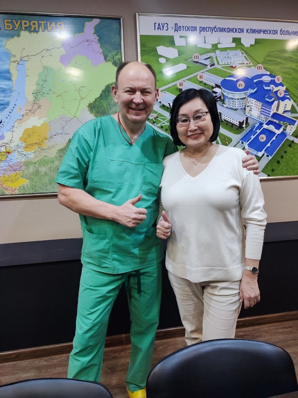 Напомним, на протяжении многих лет Юрий Козлов помогает специалистам Бурятии в проведении сложнейших операций маленьким пациентам. В прошлом году он спас как минимум троих ребятишек младше года, профиль доктора – сложные операции на органах желудочно-кишечного тракта.