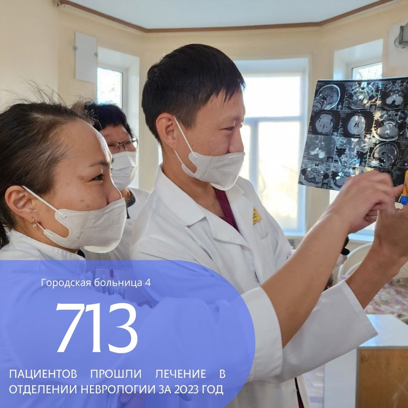 713 пациентов прошло лечение в отделении неврологии в 2023 году под чутким присмотром Заведующего отделением Цыдыпова Аюра Аюровича и врача-невролога Бальхаевой Ларисы Баяровны.