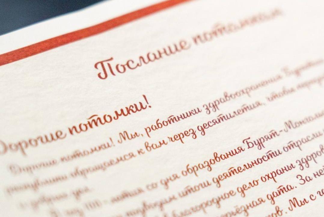 Капсула с посланием потомкам передана на хранение в Музей истории здравоохранения республики. Ее вскроют 1 августа 2048 года, в год 125-летия здравоохранения Бурятии.