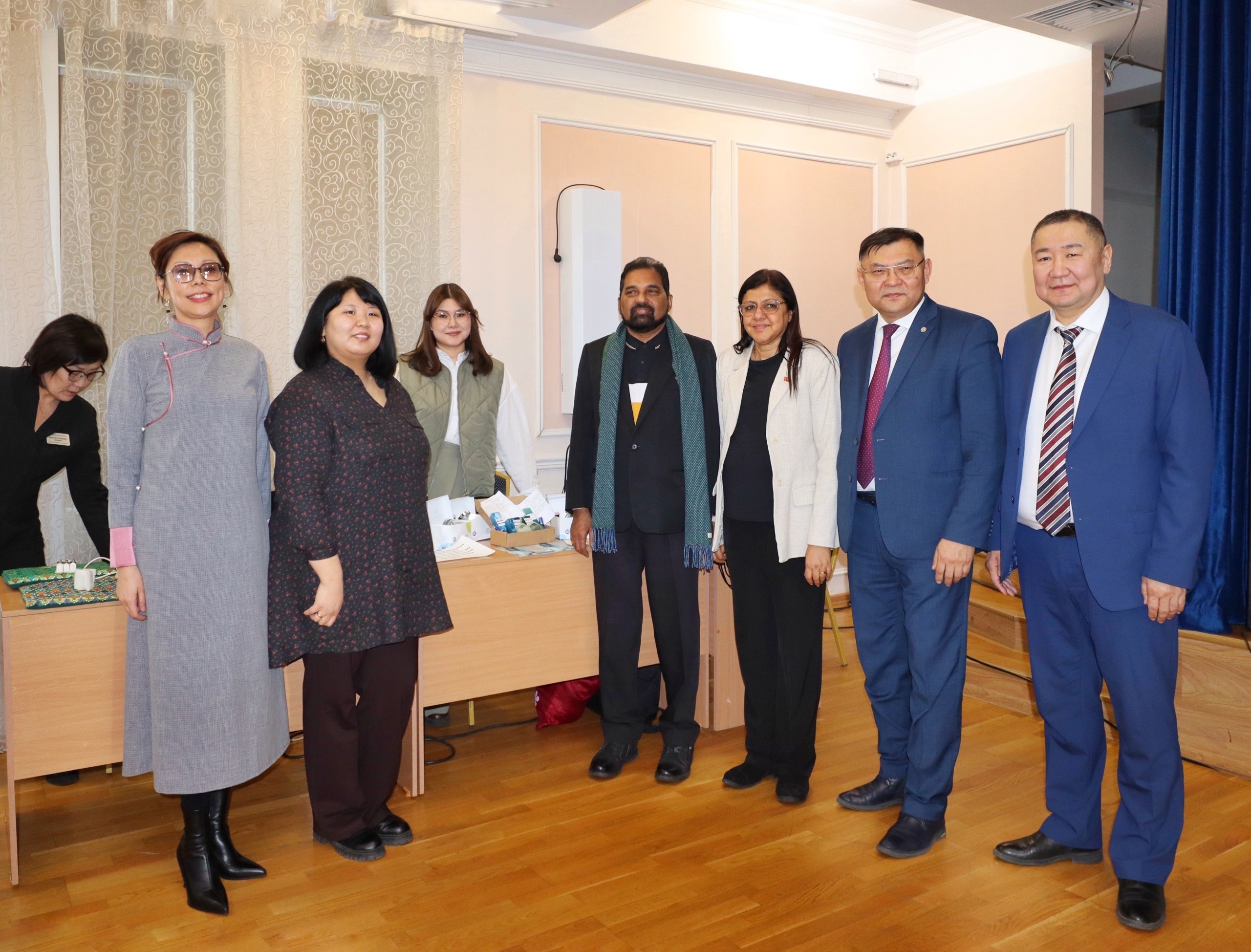 На базе Бурятского государственного университета им. Доржи Банзарова состоялась встреча руководства БГУ, студентов Медицинского института БГУ с Чрезвычайным и Полномочным Послом Демократической Социалистической Республики Шри-Ланка в РФ госпожой Джанитой Абевикрема Лиянаге. Во встрече приняла участие и.о. главного врача Центра восточной медицины Елена Алексеевна Бартанова.