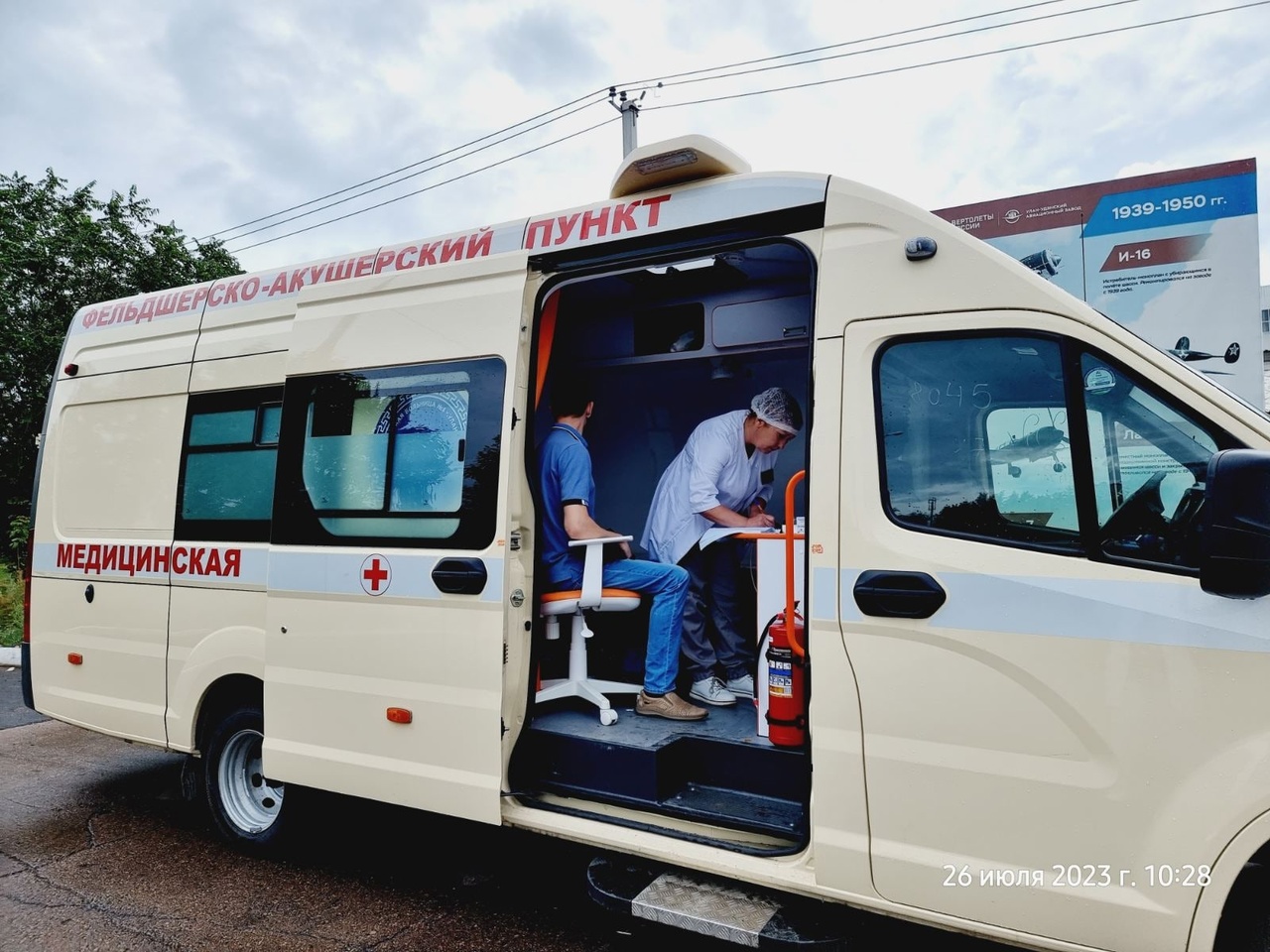 Выездная диспансеризация в формате развёрнутого на территории завода "медицинского городка" проводится впервые и стала возможна благодаря передвижному медицинскому комплексу ФЛЮМАММ и мобильному фельдшерско-акушерскому пункту, полученным Городской больницей № 4 в 2023 году при содействии Главы Бурятии А. С. Цыденова и зампреда правительства - министра здравоохранения Бурятии Е.Ю.Лудуповой.