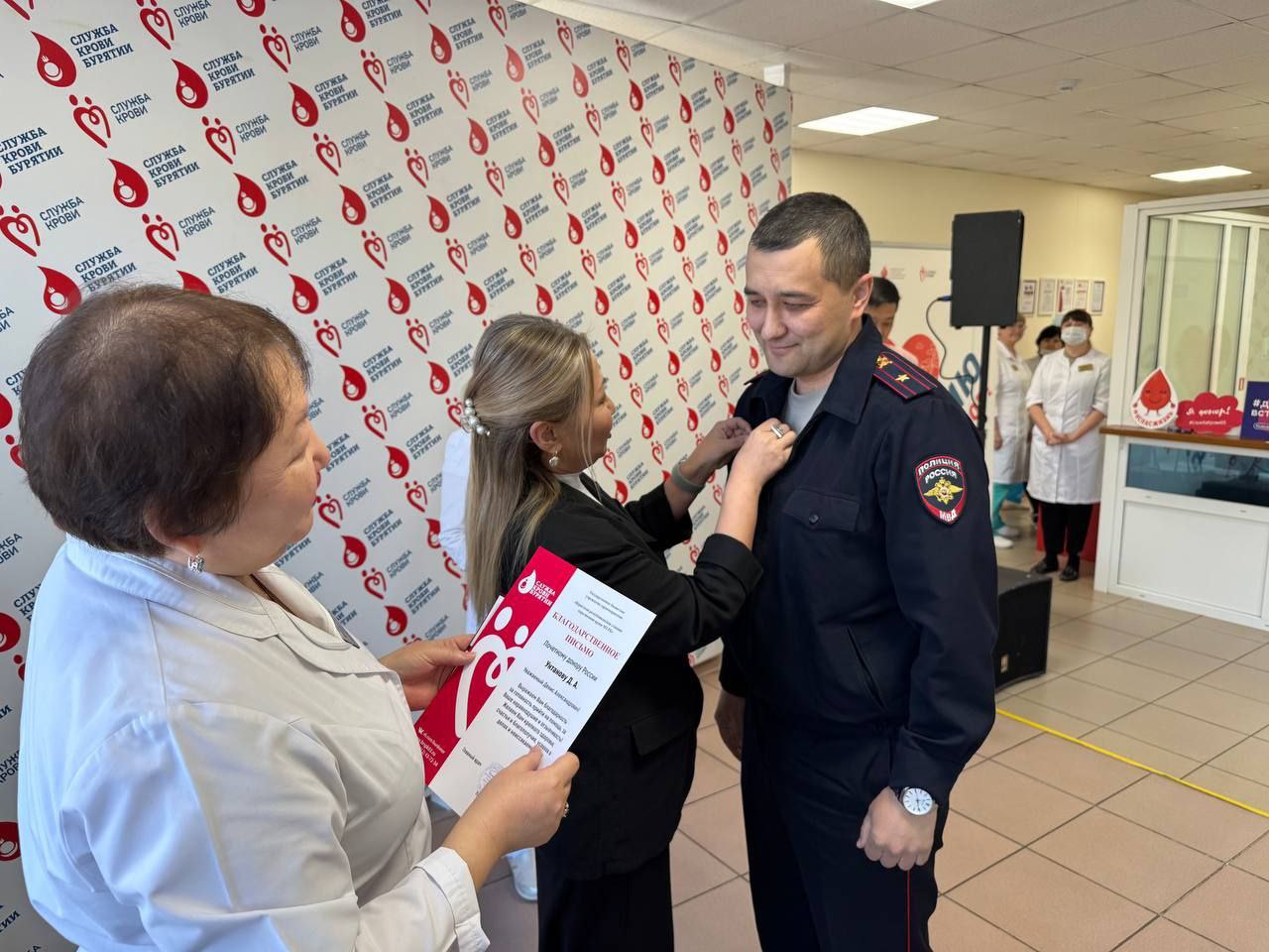 14 жителей Бурятии стали обладателями звания Почетного донора России. В числе награжденных – сотрудник Управления ГИБДД республики майор полиции Денис Унтанов. Об этом сообщает пресс-служба МВД по Бурятии.