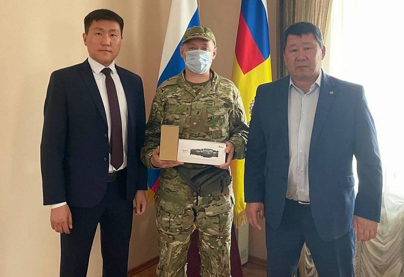 Руководитель управления Роспотребнадзора по Бурятии Сергей Ханхареев и главный врач Центра гигиены и эпидемиологии в РБ Зорикто Марактаев встретились с бойцом и передали ему тепловизионный монокуляр и тепловизионный оптический прицел.