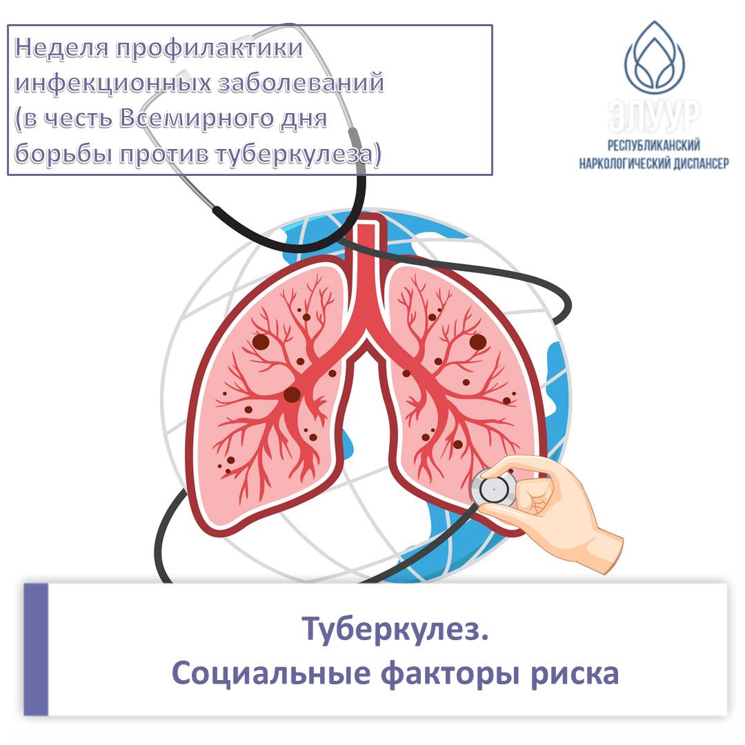 Вероятность заболевания туберкулёзом выше среди лиц из группы социального риска . Данные факторы ведут к снижению иммунитета, что в свою очередь ускоряет процесс поражения организма возбудителем туберкулеза.