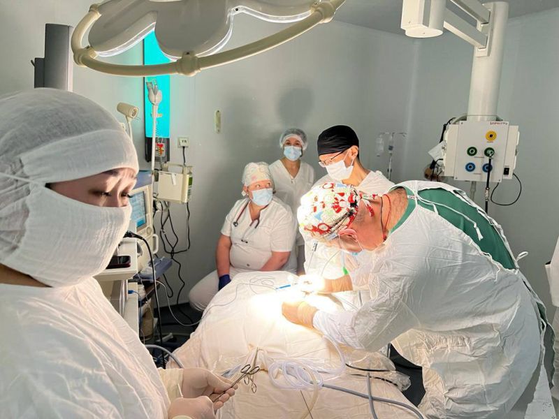 «Высокотехнологичное вмешательство мини-инвазивным методом блестяще выполнено нашим учителем, профессором Юрием Козловым. Суть операции в том, что без обширного открытого доступа (разреза грудной клетки), через 3 маленьких отверстия введены трубочки, манипулируя которыми под видеоконтролем проводится вся операция. В данном случае торакоскопически наложили швы на перерастянутый купол диафрагмы, тем самым купол встанет на своё место», - объяснили в ДРКБ.