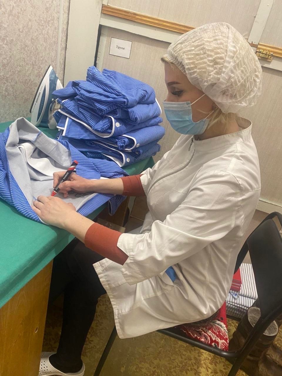 Ребята поработали в перевязочной, процедурной, промаркировали одежду и так далее.